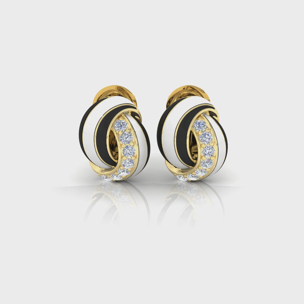 Rabat – Sophisticated and bold, this pair takes cues from the French-influenced gardens of Rabat, nestled between the Bouregreg River and the Atlantic. Featuring black and white onyx inlay with golden lines and channel-set crystals, these earrings mirror the elegance and prosperity of Renaissance Europe while offering everyday comfort with soft-close backs.